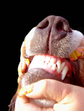 Прикус: Ножницеобразный, полный комплект зубов.